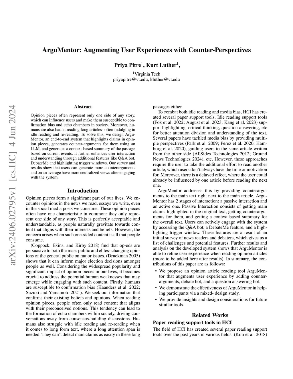 ArguMentor: Augmenting User Experiences with Counter-Perspectives