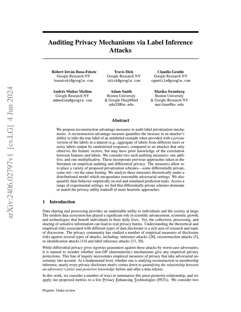 Auditing Privacy Mechanisms via Label Inference Attacks