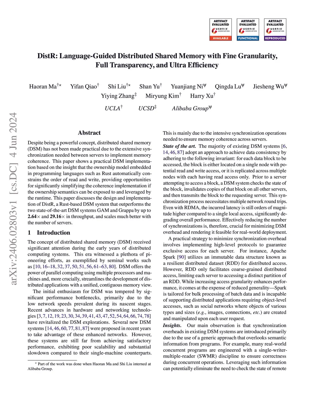 DRust: Language-Guided Distributed Shared Memory with Fine Granularity,