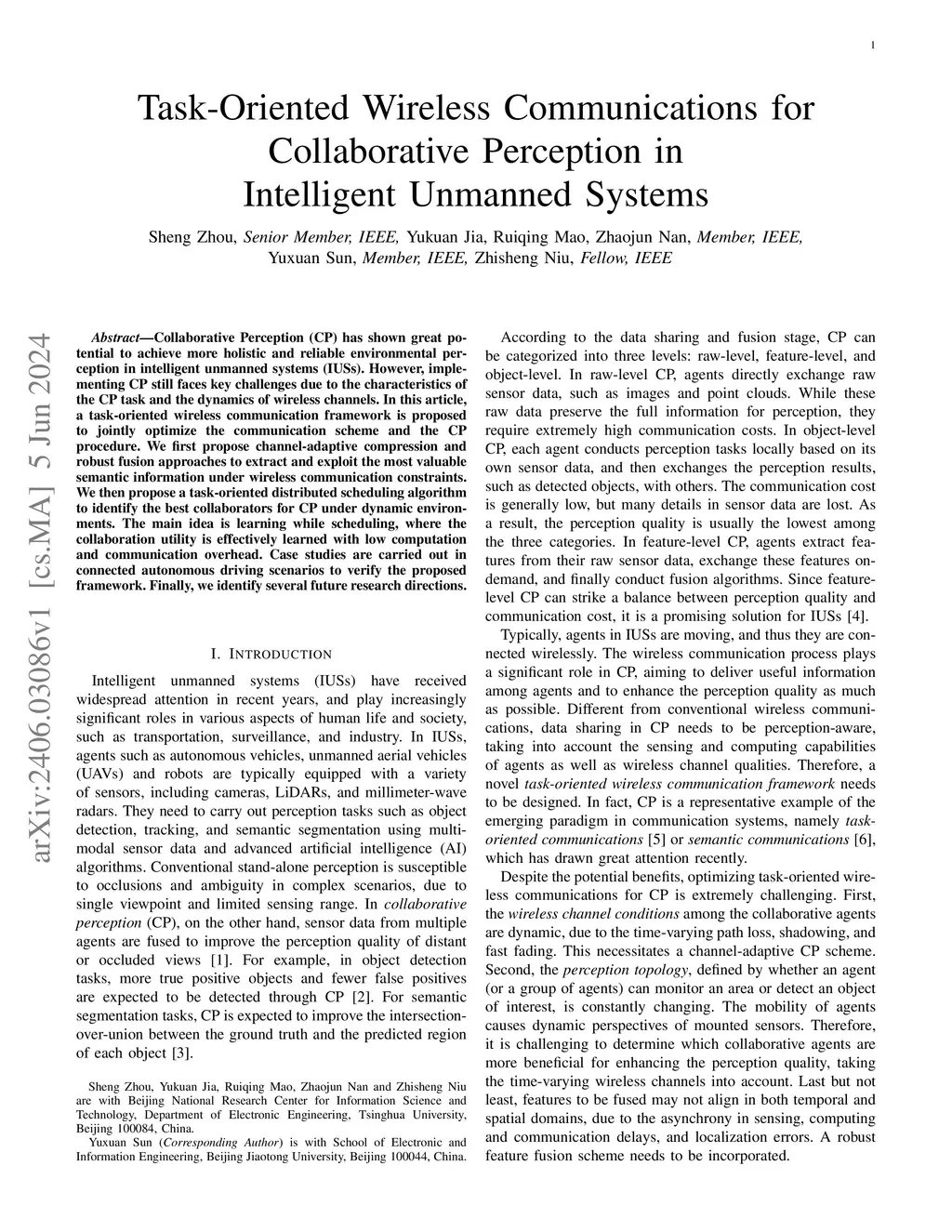 Collaborative Perception (CP) has shown great potential to achieve more holistic and reliable environmental perception in intelligent unmanned systems (IUSs). However, implementing CP still faces key challenges due to the characteristics of the CP task and the dynamics of wireless channels. In this article, a task-oriented wireless communication framework is proposed to jointly optimize the communication scheme and the CP procedure. We first propose channel-adaptive compression and robust fusion approaches to extract and exploit the most valuable semantic information under wireless communication constraints. We then propose a task-oriented distributed scheduling algorithm to identify the best collaborators for CP under dynamic environments. The main idea is learning while scheduling, where the collaboration utility is effectively learned with low computation and communication overhead. Case studies are carried out in connected autonomous driving scenarios to verify the proposed framework. Finally, we identify several future research directions.
