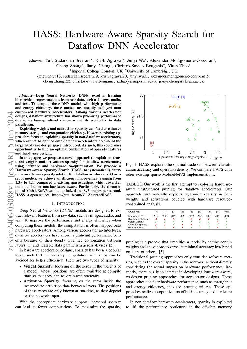 HASS: Hardware-Aware Sparsity Search for Dataflow DNN Accelerator