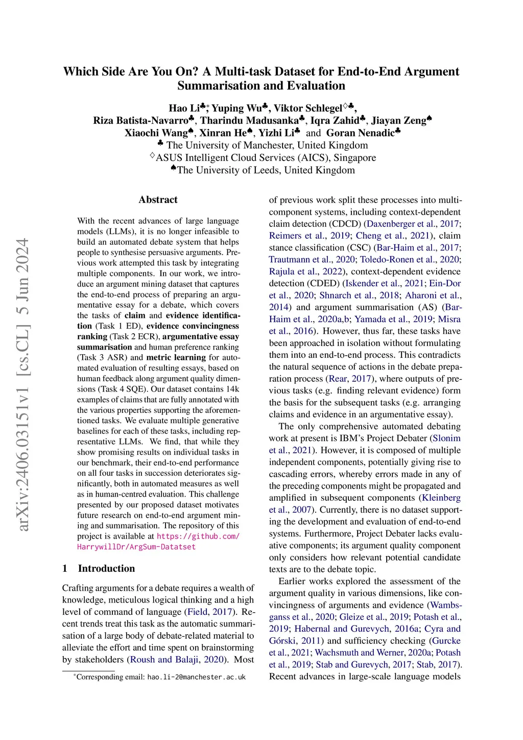 Which Side Are You On? A Multi-task Dataset for End-to-End Argument