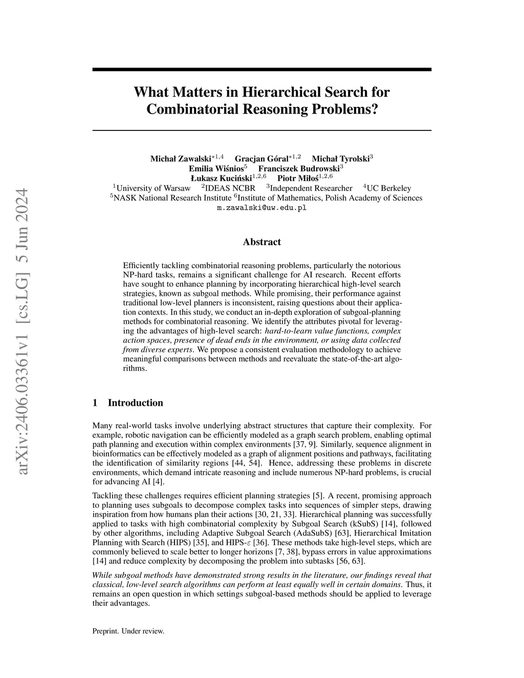 Efficiently tackling combinatorial reasoning problems, particularly the notorious NP-hard tasks, remains a significant challenge for AI research. Recent efforts have sought to enhance planning by incorporating hierarchical high-level search strategies, known as subgoal methods. While promising, their performance against traditional low-level planners is inconsistent, raising questions about their application contexts. In this study, we conduct an in-depth exploration of subgoal-planning methods for combinatorial reasoning. We identify the attributes pivotal for leveraging the advantages of high-level search: hard-to-learn value functions, complex action spaces, presence of dead ends in the environment, or using data collected from diverse experts. We propose a consistent evaluation methodology to achieve meaningful comparisons between methods and reevaluate the state-of-the-art algorithms.