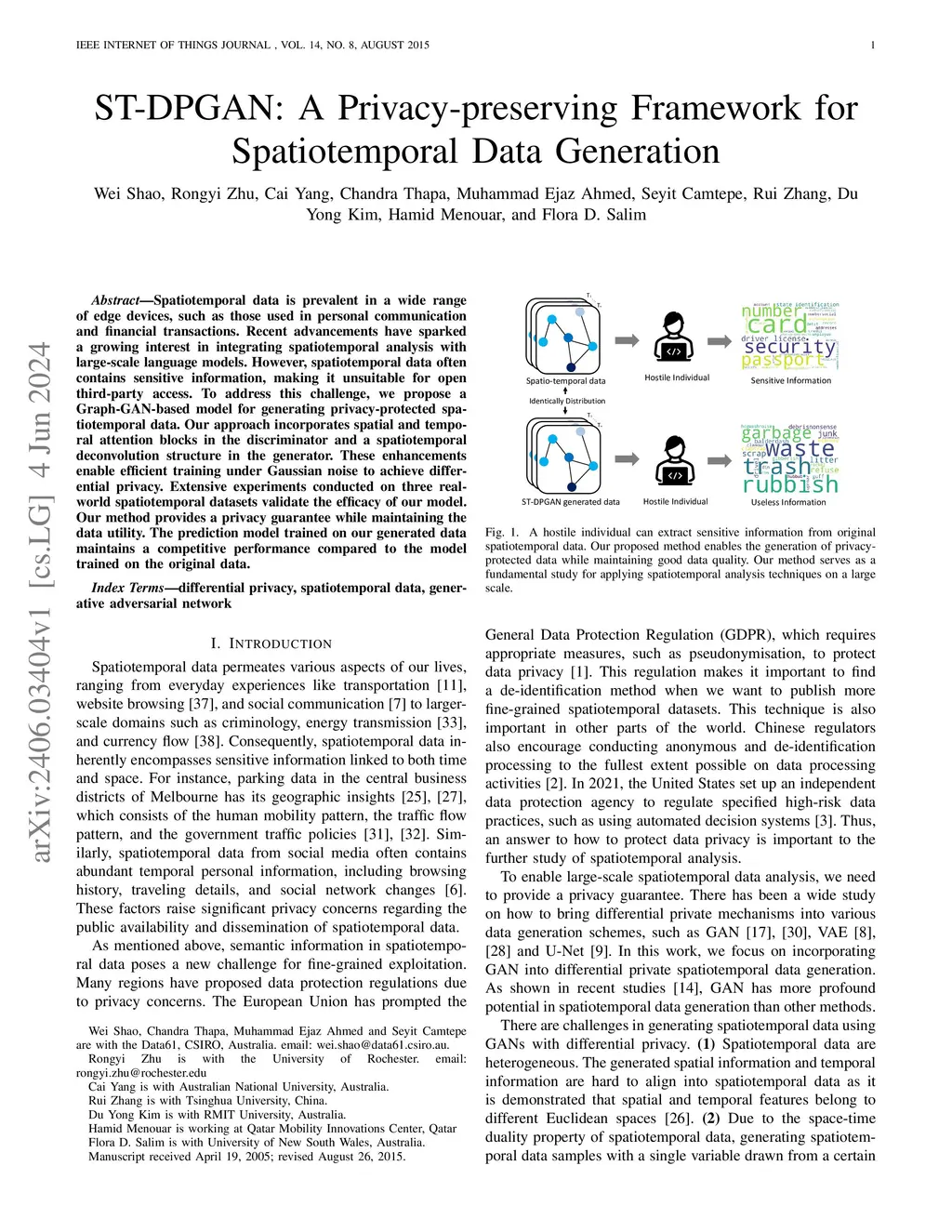ST-DPGAN: A Privacy-preserving Framework for Spatiotemporal Data
