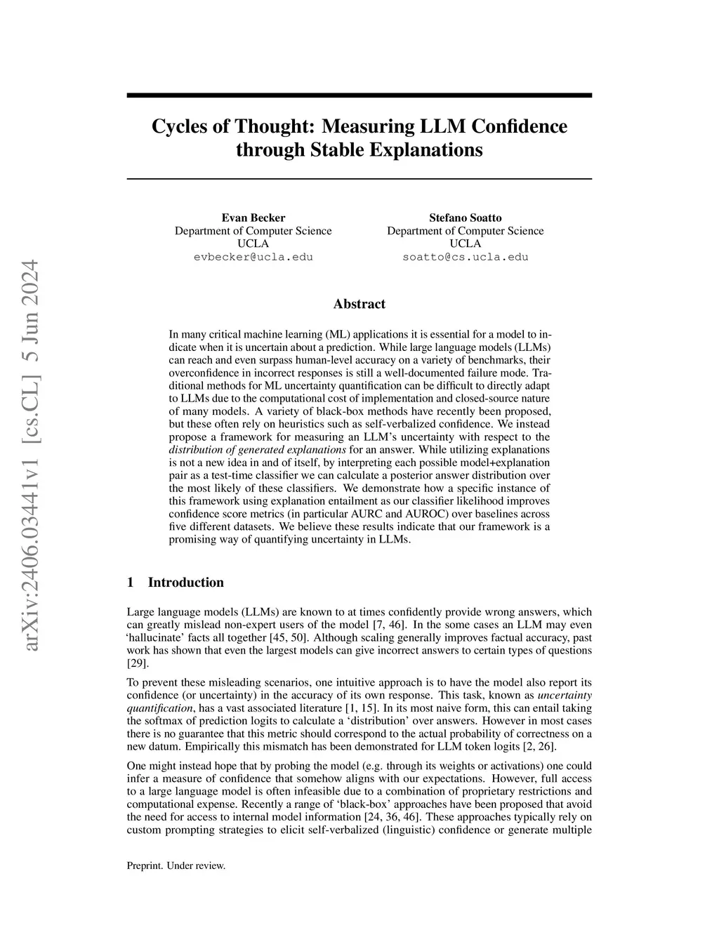Cycles of Thought: Measuring LLM Confidence through Stable Explanations