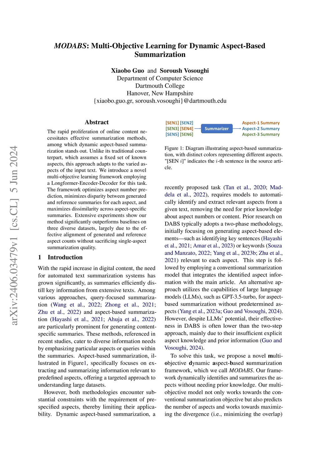 MODABS: Multi-Objective Learning for Dynamic Aspect-Based Summarization