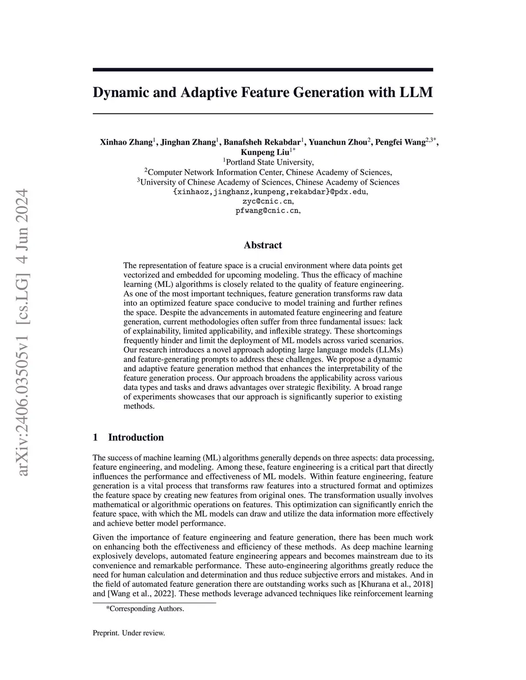 The representation of feature space is a crucial environment where data points get vectorized and embedded for subsequent modeling. Thus the efficacy of machine learning (ML) algorithms is closely related to the quality of feature engineering. As one of the most important techniques, feature generation transforms raw data into an optimized feature space conducive to model training and further refines the space. Despite the advancements in automated feature engineering and feature generation, current methodologies often suffer from three fundamental issues: lack of explainability, limited applicability, and inflexible strategy. These shortcomings frequently hinder and limit the deployment of ML models across varied scenarios. Our research introduces a novel approach adopting large language models (LLMs) and feature-generating prompts to address these challenges. We propose a dynamic and adaptive feature generation method that enhances the interpretability of the feature generation process. Our approach broadens the applicability across various data types and tasks and offers advantages over strategic flexibility. A broad range of experiments showcases that our approach is significantly superior to existing methods.
