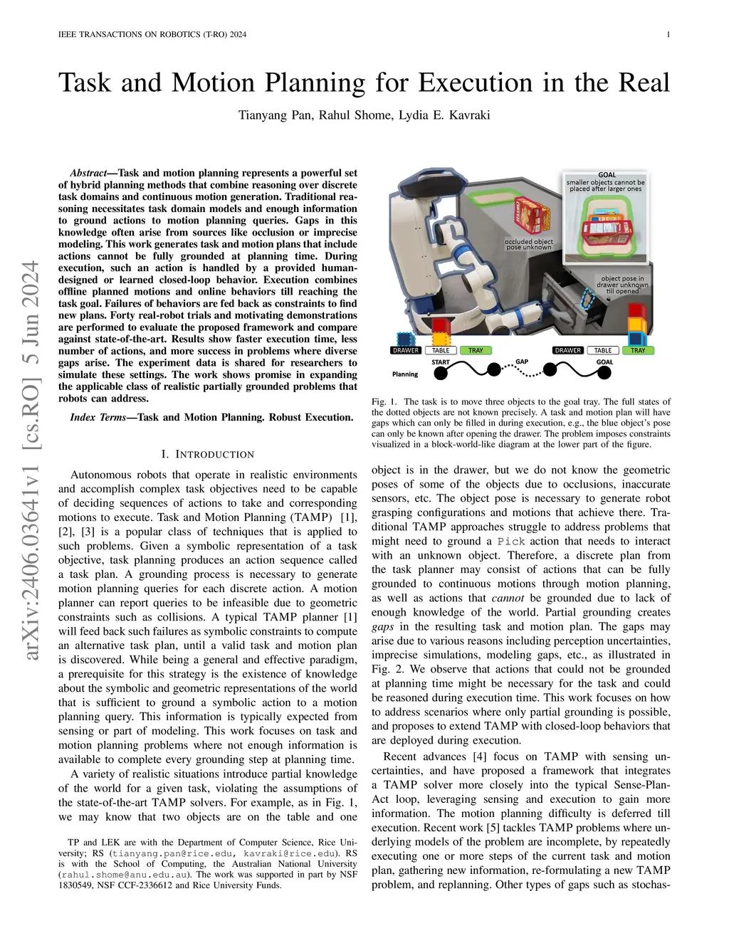 Task and Motion Planning for Execution in the Real