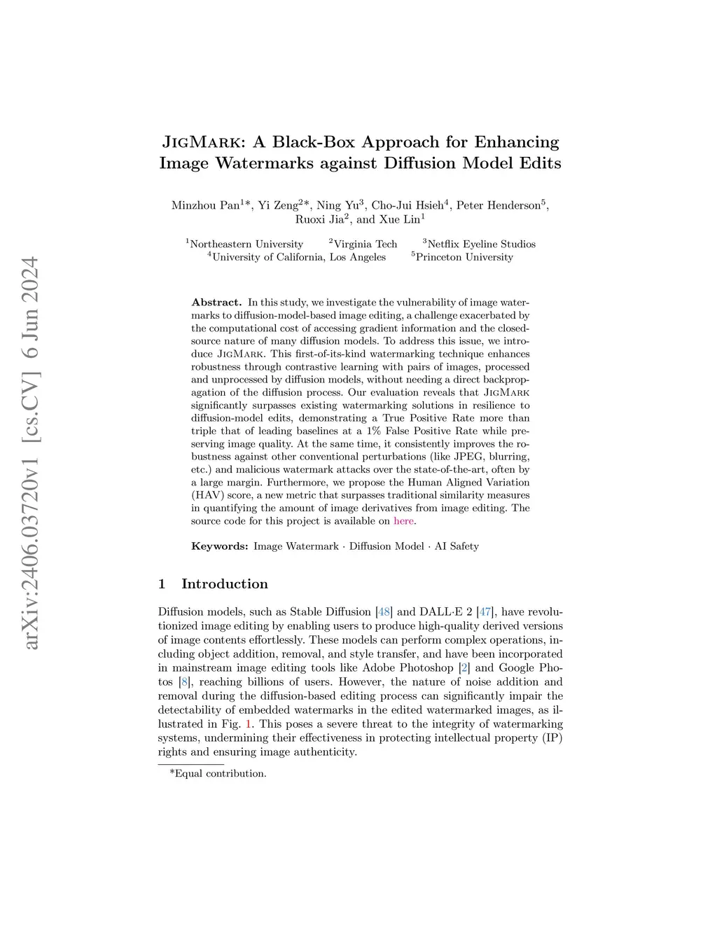 In this study, we investigate the vulnerability of image watermarks to diffusion-model-based image editing, a challenge exacerbated by the computational cost of accessing gradient information and the closed-source nature of many diffusion models. To address this issue, we introduce JIGMARK. This first-of-its-kind watermarking technique enhances robustness through contrastive learning with pairs of images, processed and unprocessed by diffusion models, without needing a direct backpropagation of the diffusion process. Our evaluation reveals that JIGMARK significantly surpasses existing watermarking solutions in resilience to diffusion-model edits, demonstrating a True Positive Rate more than triple that of leading baselines at a 1% False Positive Rate while preserving image quality. At the same time, it consistently improves the robustness against other conventional perturbations (like JPEG, blurring, etc.) and malicious watermark attacks over the state-of-the-art, often by a large margin. Furthermore, we propose the Human Aligned Variation (HAV) score, a new metric that surpasses traditional similarity measures in quantifying the number of image derivatives from image editing.