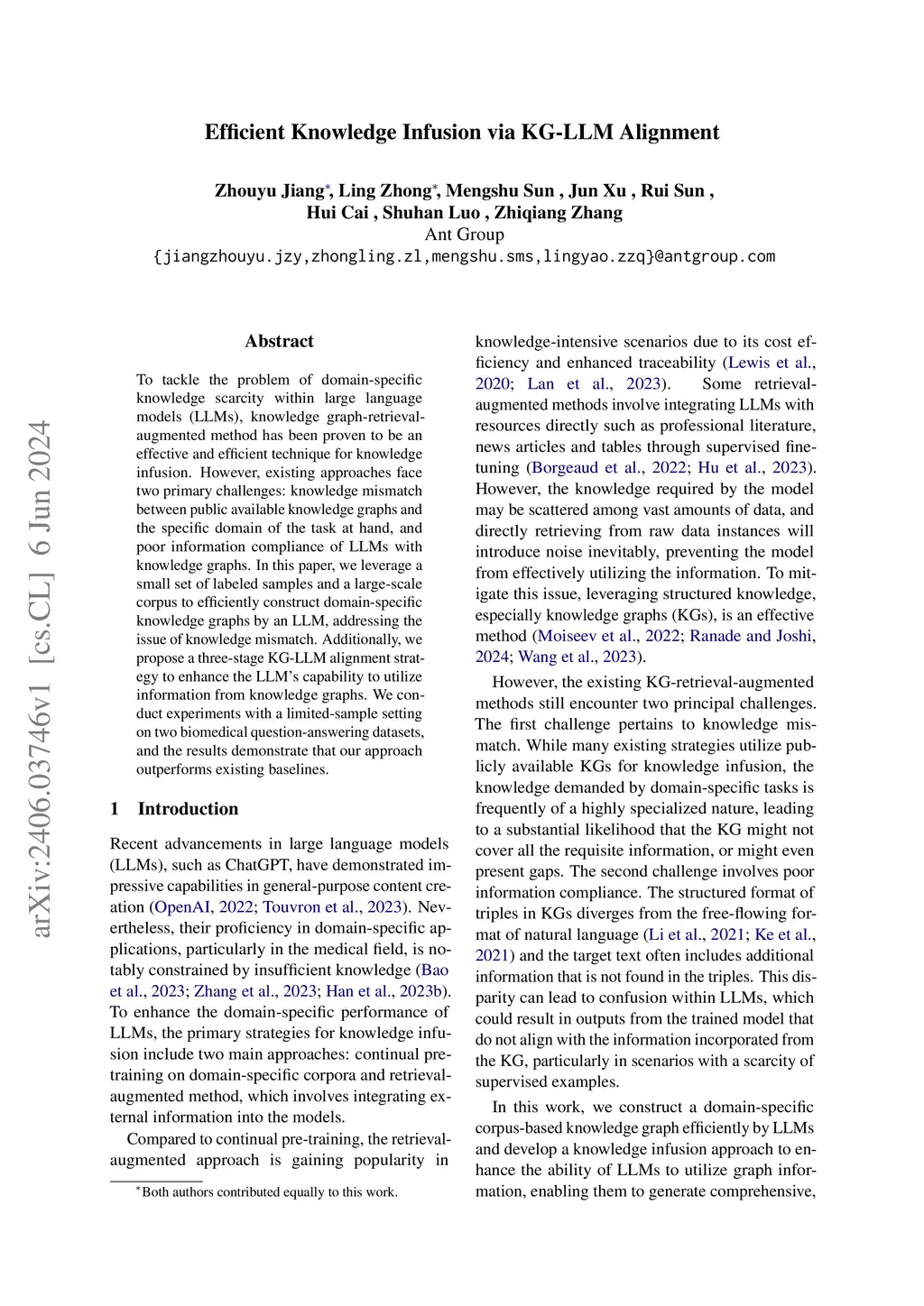 Efficient Knowledge Infusion via KG-LLM Alignment