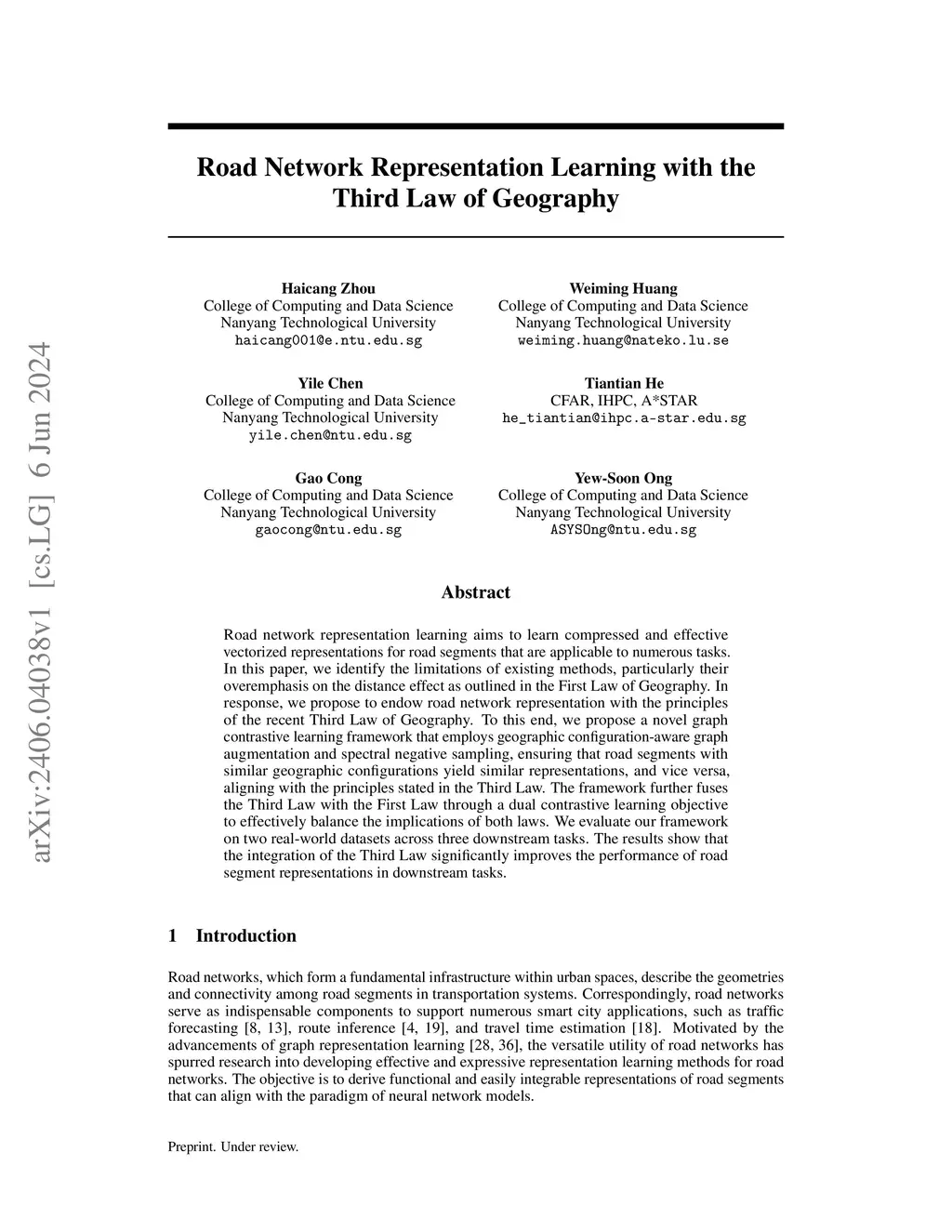 Road Network Representation Learning with the Third Law of Geography