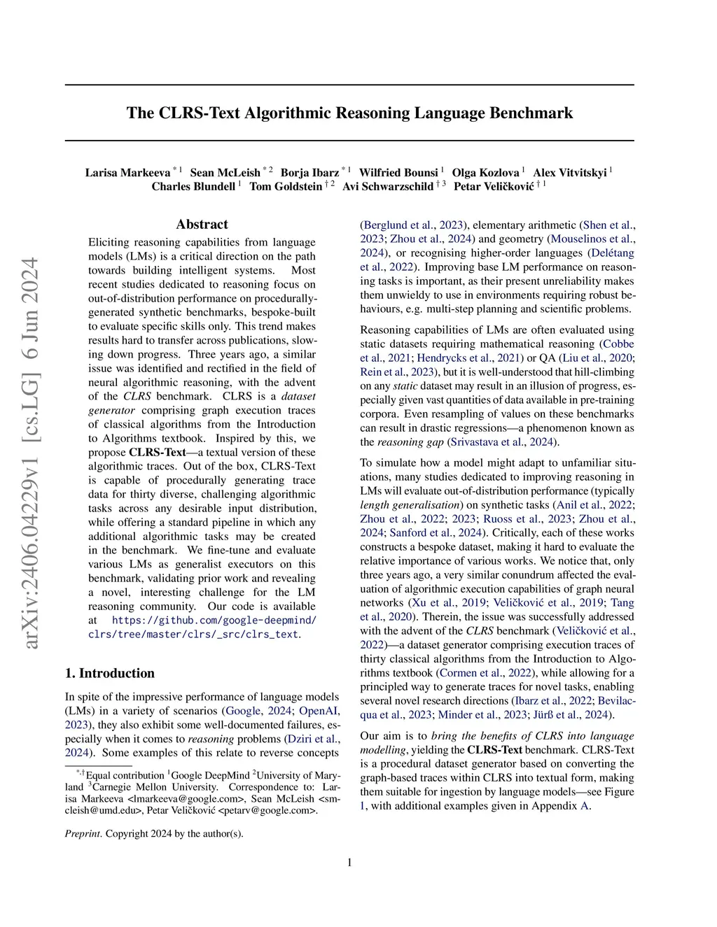 The CLRS-Text Algorithmic Reasoning Language Benchmark