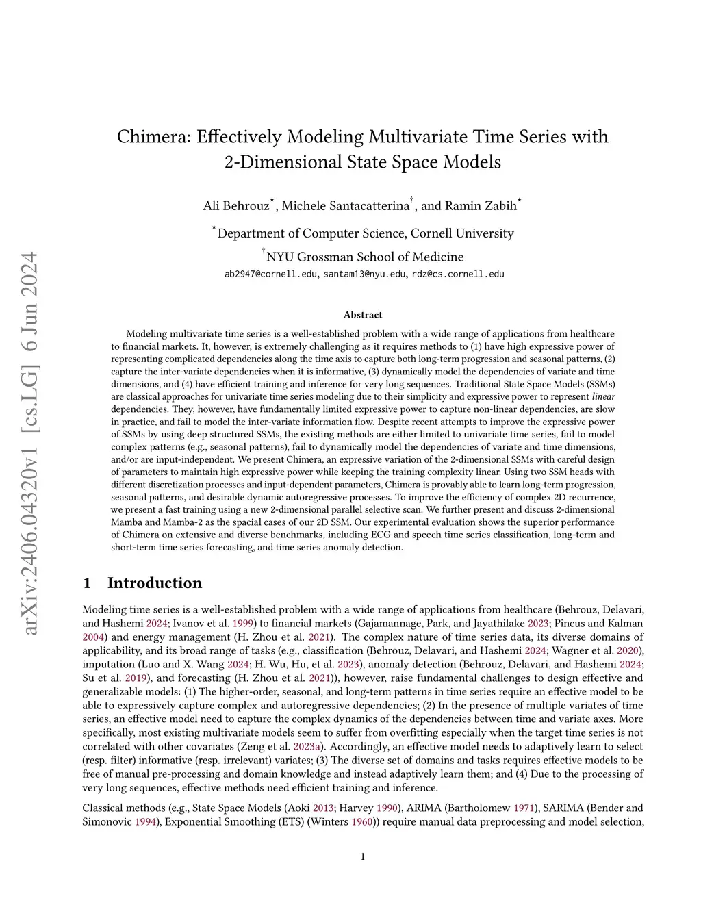 Chimera: Effectively Modeling Multivariate Time Series with
