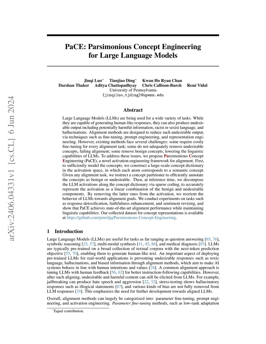 PaCE: Parsimonious Concept Engineering for Large Language Models