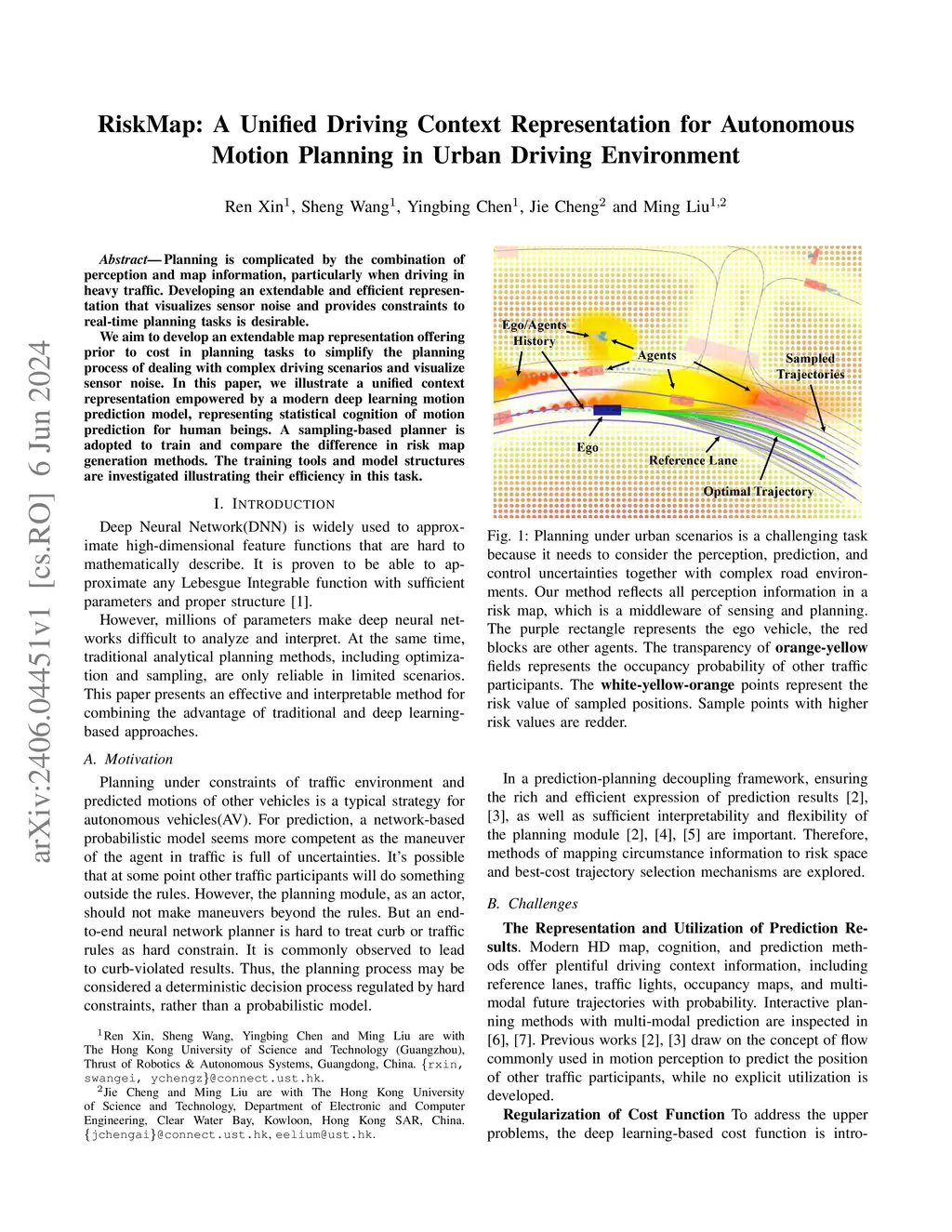 Planning is complicated by the combination of perception and map information, particularly when driving in heavy traffic. Developing an extendable and efficient representation that visualizes sensor noise and provides constraints to real-time planning tasks is desirable. We aim to develop an extendable map representation offering prior to cost in planning tasks to simplify the planning process of dealing with complex driving scenarios and visualize sensor noise. In this paper, we illustrate a unified context representation empowered by a modern deep learning motion prediction model, representing statistical cognition of motion prediction for human beings. A sampling-based planner is adopted to train and compare the difference in risk map generation methods. The training tools and model structures are investigated illustrating their efficiency in this task.