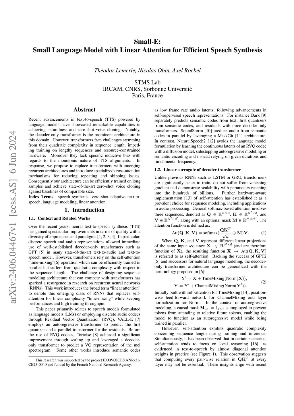 Small-E: Small Language Model with Linear Attention for Efficient Speech
