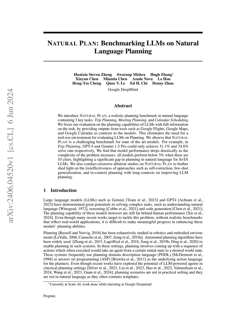 NATURAL PLAN: Benchmarking LLMs on Natural Language Planning