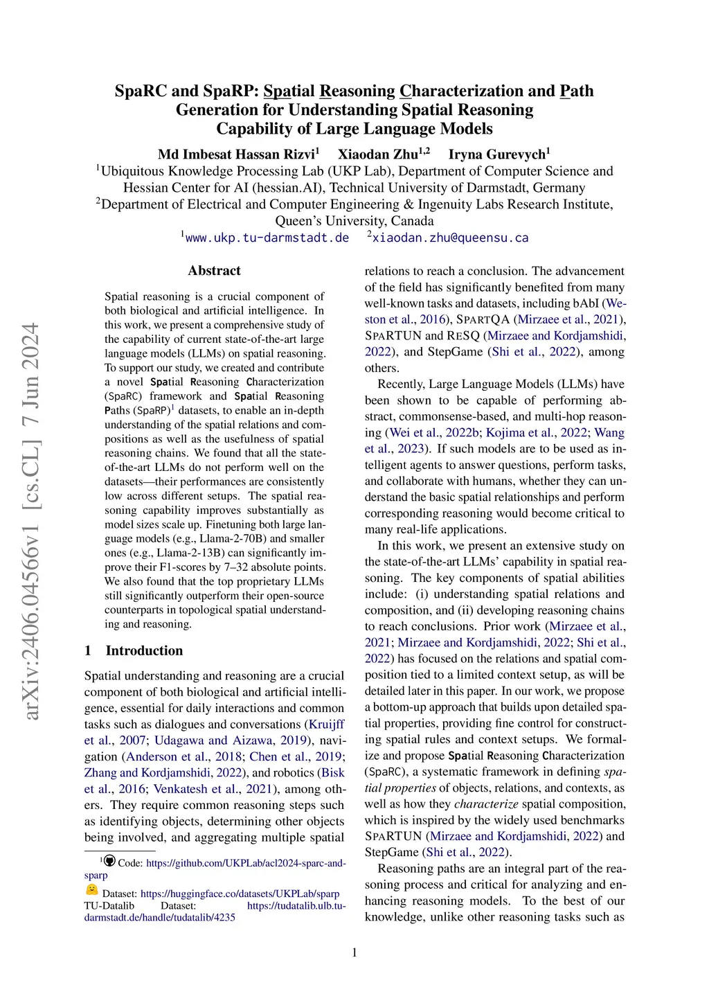 SpaRC and SpaRP: Spatial Reasoning Characterization and Path Generation