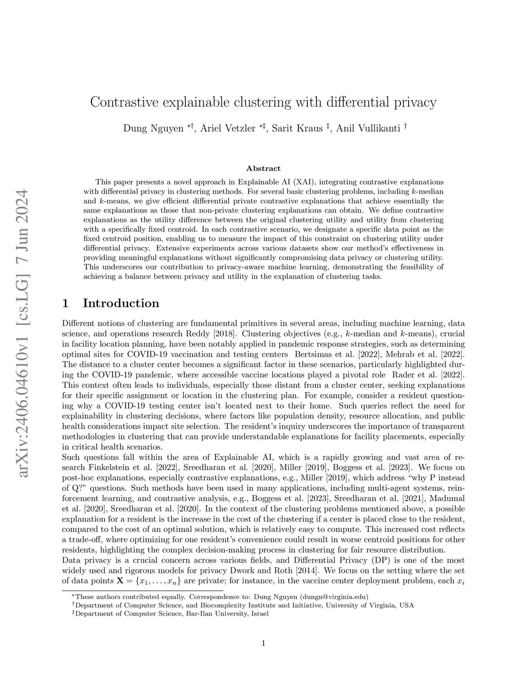 This paper presents a novel approach to Explainable AI (XAI) that combines contrastive explanations with differential privacy for clustering algorithms. Focusing on k-median and k-means problems, we calculate contrastive explanations as the utility difference between original clustering and clustering with a centroid fixed to a specific data point. This method provides personalized insights into centroid placement. Our key contribution is demonstrating that these differentially private explanations achieve essentially the same utility bounds as non-private explanations. Experiments across various datasets show that our approach offers meaningful, privacy-preserving, and individually relevant explanations without significantly compromising clustering utility. This work advances privacy-aware machine learning by balancing data protection, explanation quality, and personalization in clustering tasks.