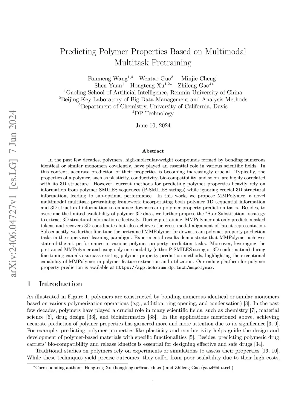 MMPolymer: A Multimodal Multitask Pretraining Framework for Polymer