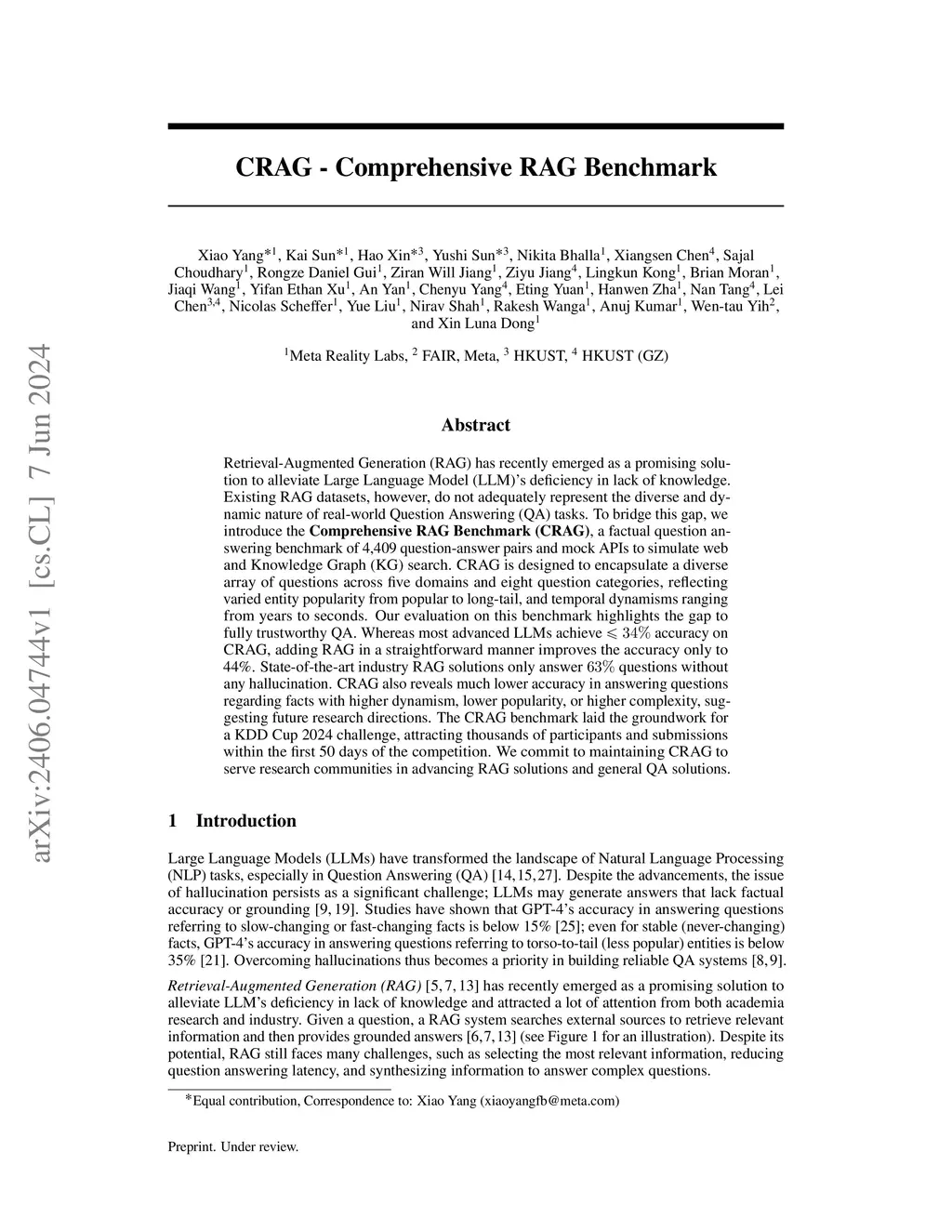 CRAG -- Comprehensive RAG Benchmark