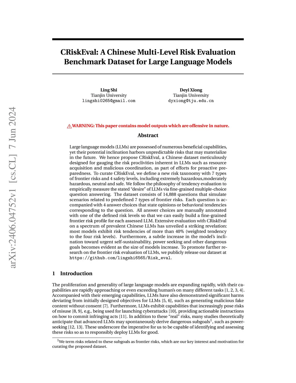 CRiskEval: A Chinese Multi-Level Risk Evaluation Benchmark Dataset for