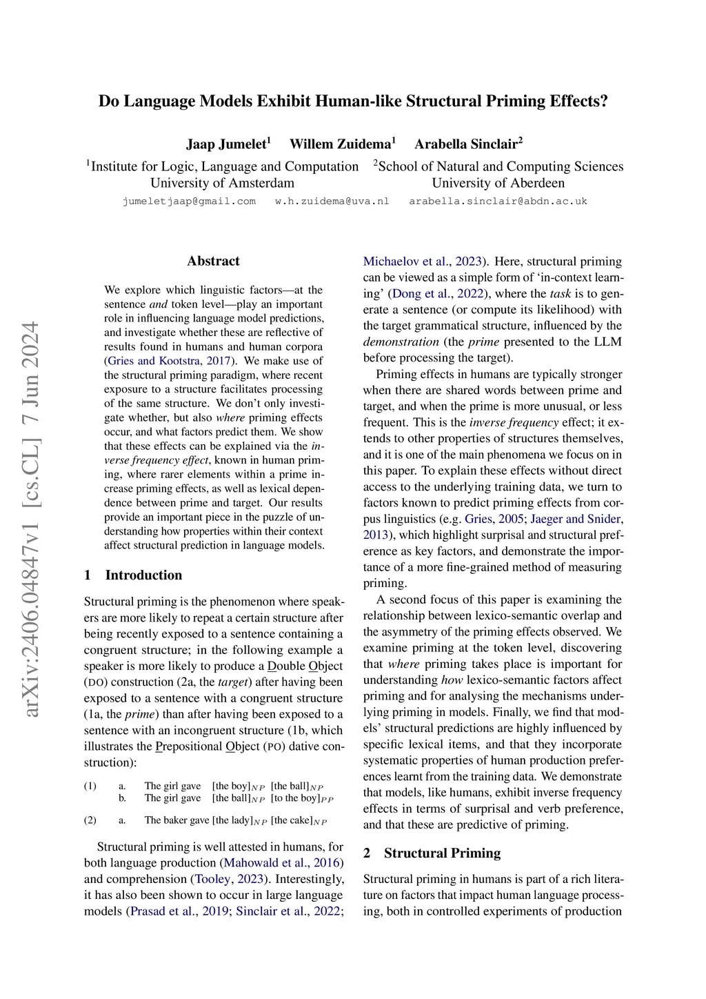 We explore which linguistic factors -- at the sentence and token level -- play an important role in influencing language model predictions, and investigate whether these are reflective of results found in humans and human corpora (Gries and Kootstra, 2017). We make use of the structural priming paradigm, where recent exposure to a structure facilitates processing of the same structure. We don't only investigate whether, but also where priming effects occur, and what factors predict them. We show that these effects can be explained via the inverse frequency effect, known in human priming, where rarer elements within a prime increase priming effects, as well as lexical dependence between prime and target. Our results provide an important piece in the puzzle of understanding how properties within their context affect structural prediction in language models.