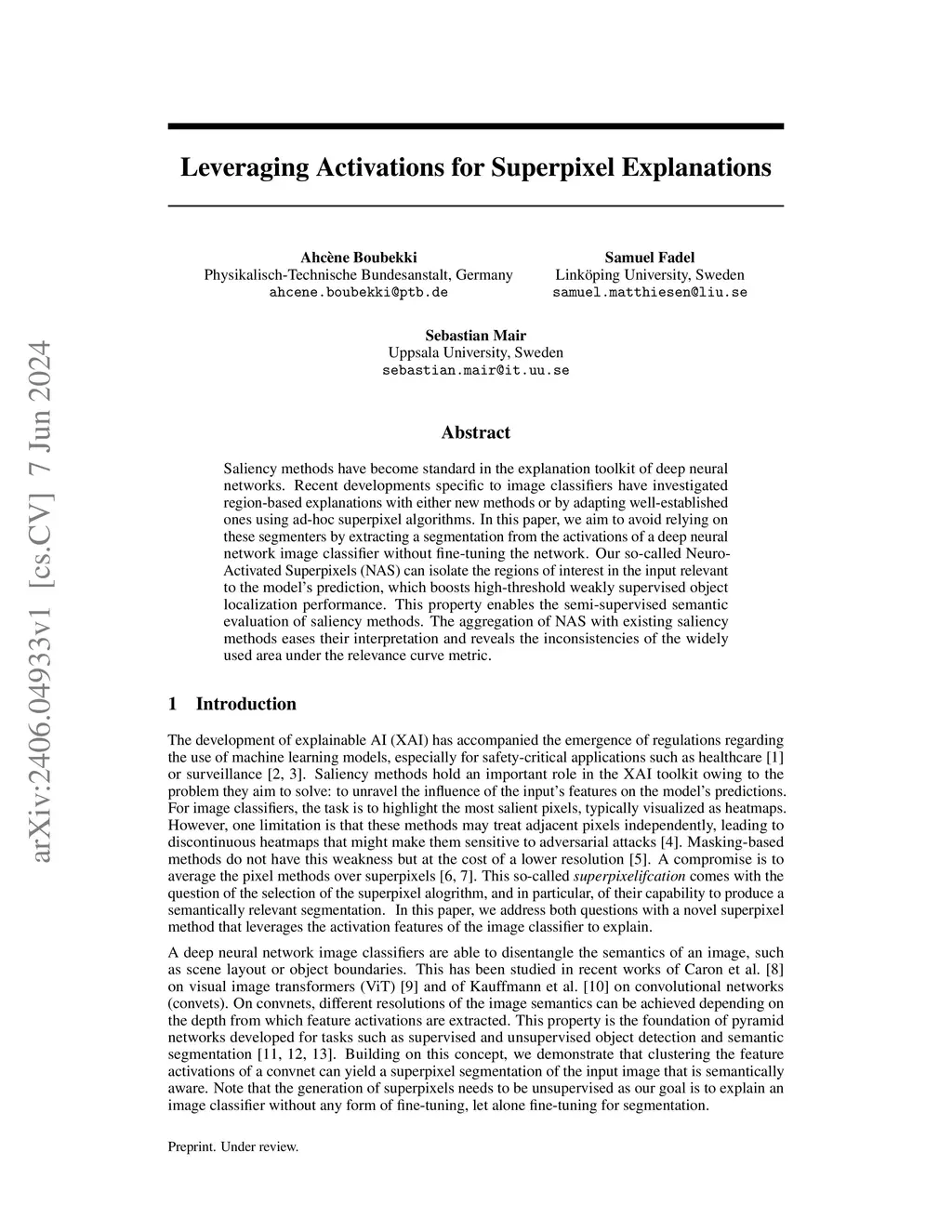 Leveraging Activations for Superpixel Explanations