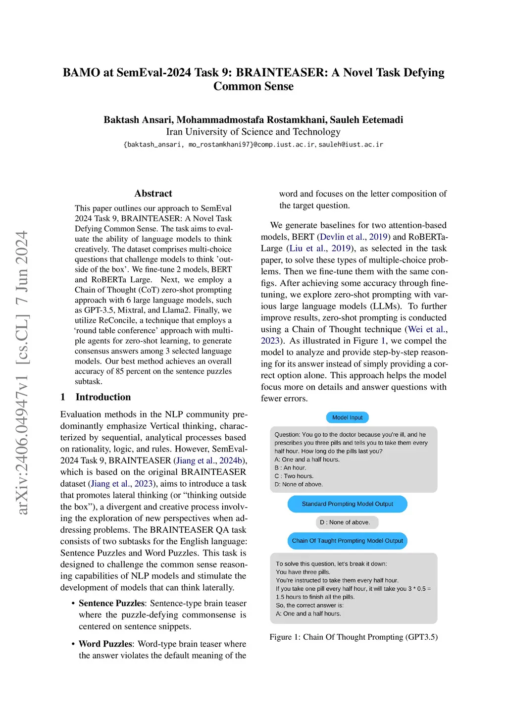 BAMO at SemEval-2024 Task 9: BRAINTEASER: A Novel Task Defying Common