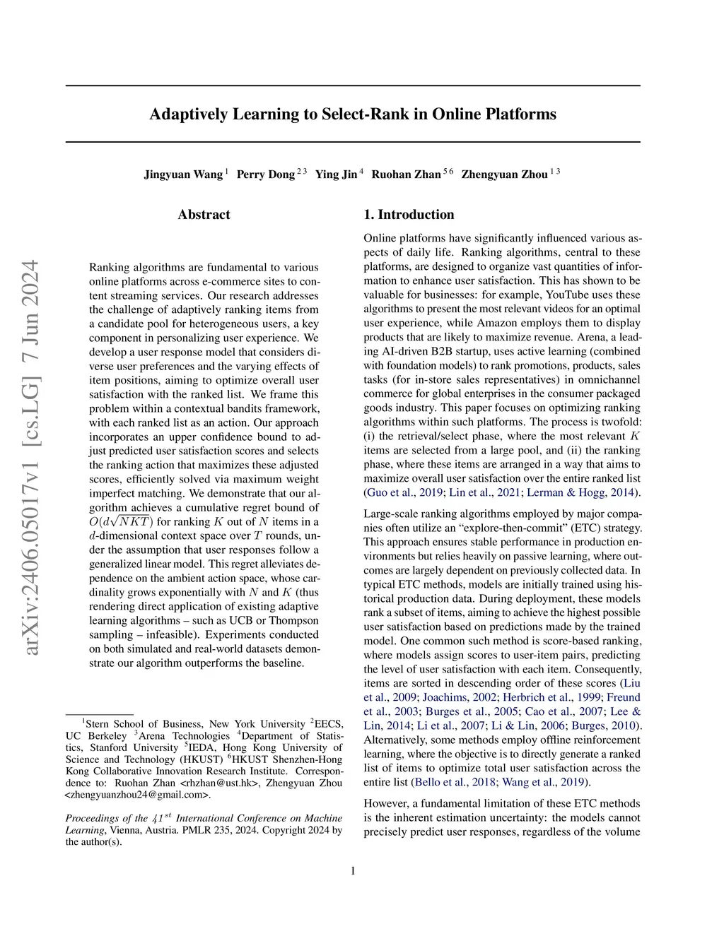 Adaptively Learning to Select-Rank in Online Platforms
