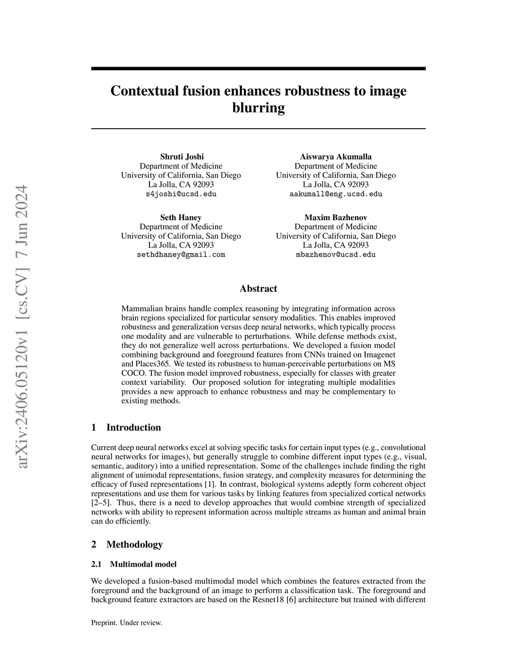 Contextual fusion enhances robustness to image blurring
