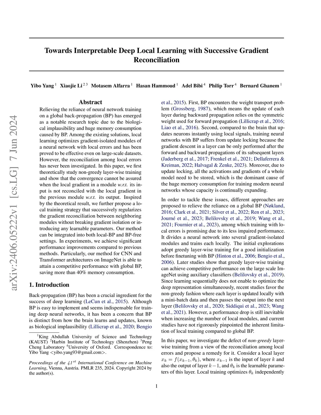 Relieving the reliance of neural network training on a global back-propagation (BP) has emerged as a notable research topic due to the biological implausibility and huge memory consumption caused by BP. Among the existing solutions, local learning optimizes gradient-isolated modules of a neural network with local errors and has been proved to be effective even on large-scale datasets. However, the reconciliation among local errors has never been investigated. In this paper, we first theoretically study non-greedy layer-wise training and show that the convergence cannot be assured when the local gradient in a module w.r.t. its input is not reconciled with the local gradient in the previous module w.r.t. its output. Inspired by the theoretical result, we further propose a local training strategy that successively regularizes the gradient reconciliation between neighboring modules without breaking gradient isolation or introducing any learnable parameters. Our method can be integrated into both local-BP and BP-free settings. In experiments, we achieve significant performance improvements compared to previous methods. Particularly, our method for CNN and Transformer architectures on ImageNet is able to attain a competitive performance with global BP, saving more than 40% memory consumption.