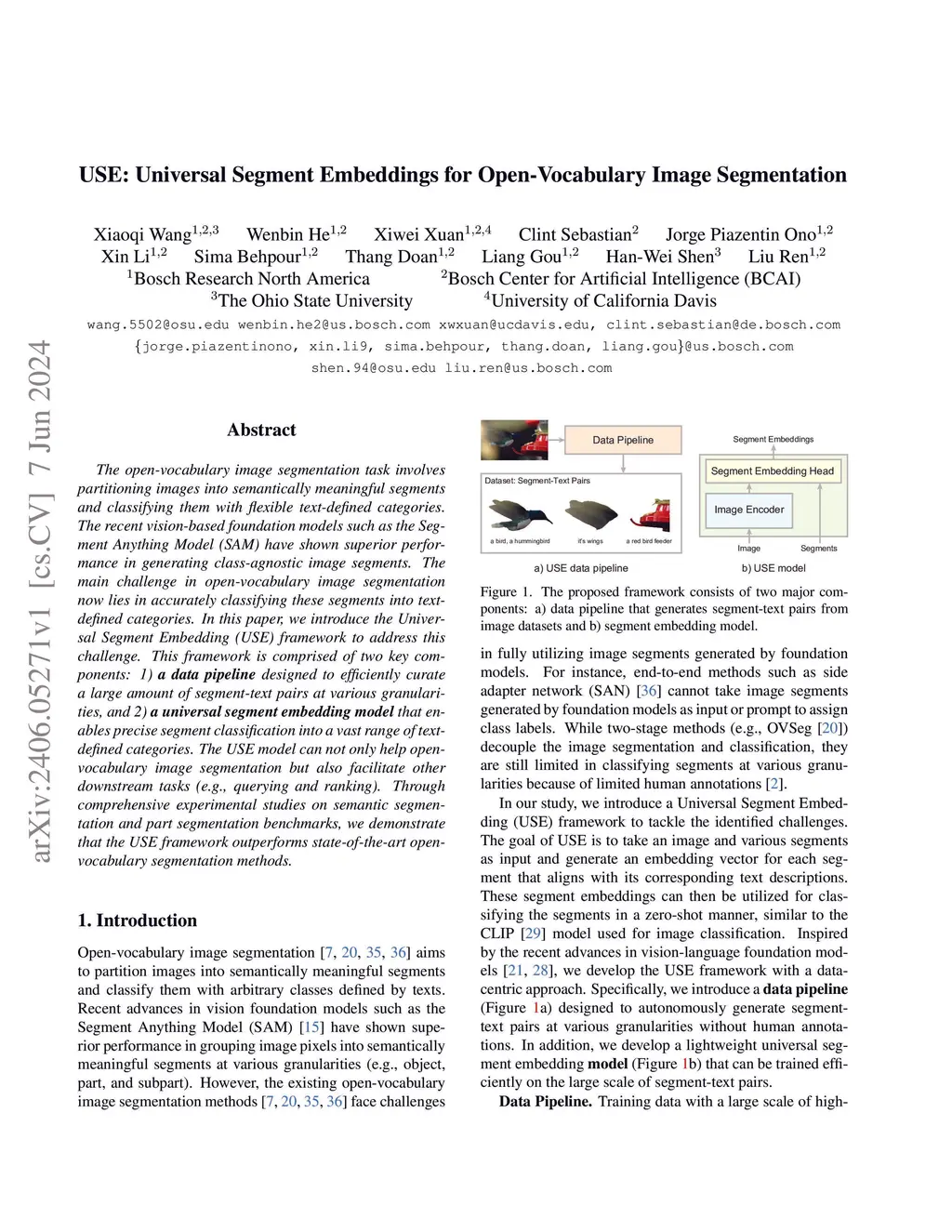 USE: Universal Segment Embeddings for Open-Vocabulary Image Segmentation