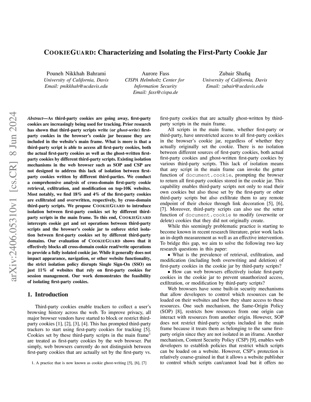 COOKIEGUARD: Characterizing and Isolating the First-Party Cookie Jar