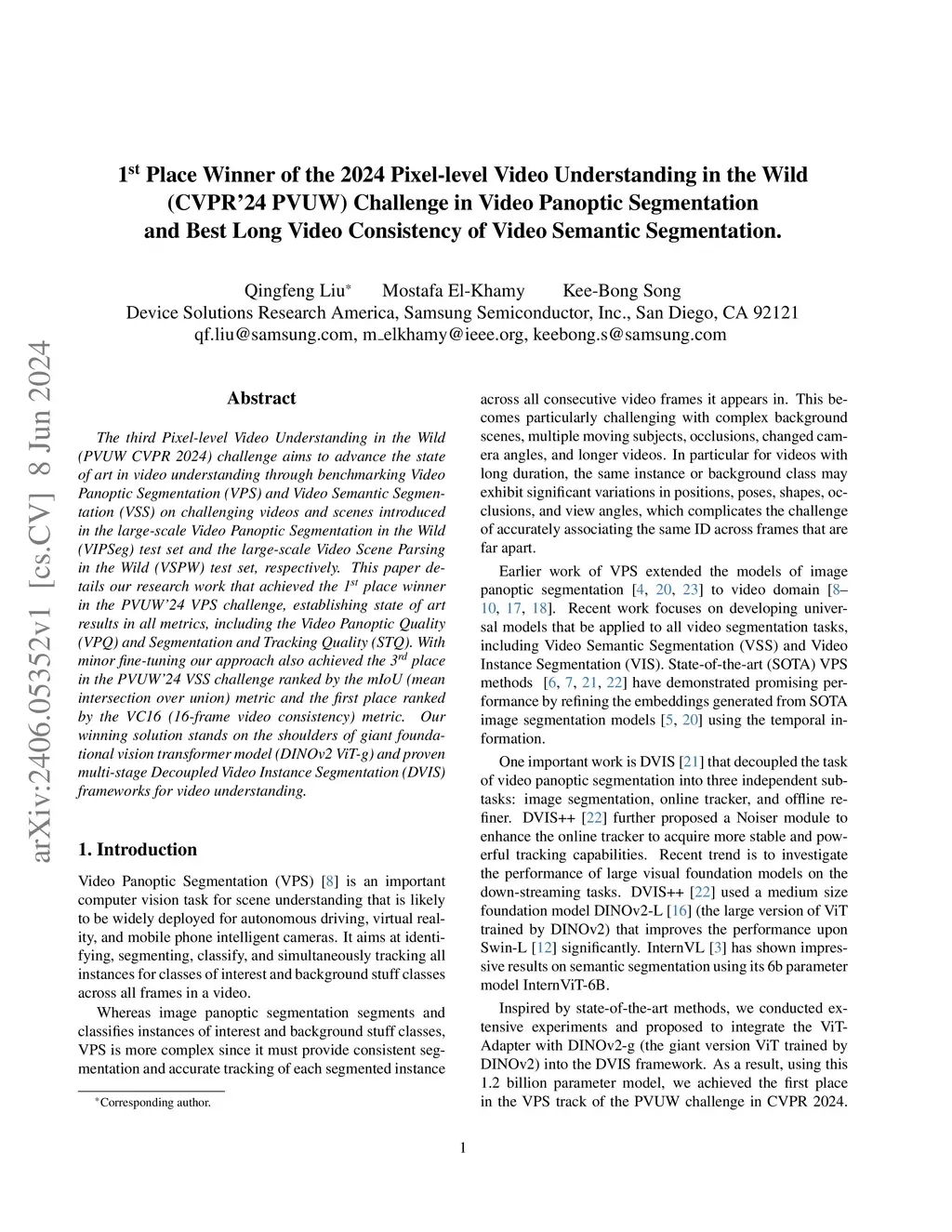 The third Pixel-level Video Understanding in the Wild (PVUW CVPR 2024) challenge aims to advance the state of art in video understanding through benchmarking Video Panoptic Segmentation (VPS) and Video Semantic Segmentation (VSS) on challenging videos and scenes introduced in the large-scale Video Panoptic Segmentation in the Wild (VIPSeg) test set and the large-scale Video Scene Parsing in the Wild (VSPW) test set, respectively. This paper details our research work that achieved the 1st place winner in the PVUW'24 VPS challenge, establishing state of art results in all metrics, including the Video Panoptic Quality (VPQ) and Segmentation and Tracking Quality (STQ). With minor fine-tuning our approach also achieved the 3rd place in the PVUW'24 VSS challenge ranked by the mIoU (mean intersection over union) metric and the first place ranked by the VC16 (16-frame video consistency) metric. Our winning solution stands on the shoulders of giant foundational vision transformer model (DINOv2 ViT-g) and proven multi-stage Decoupled Video Instance Segmentation (DVIS) frameworks for video understanding.