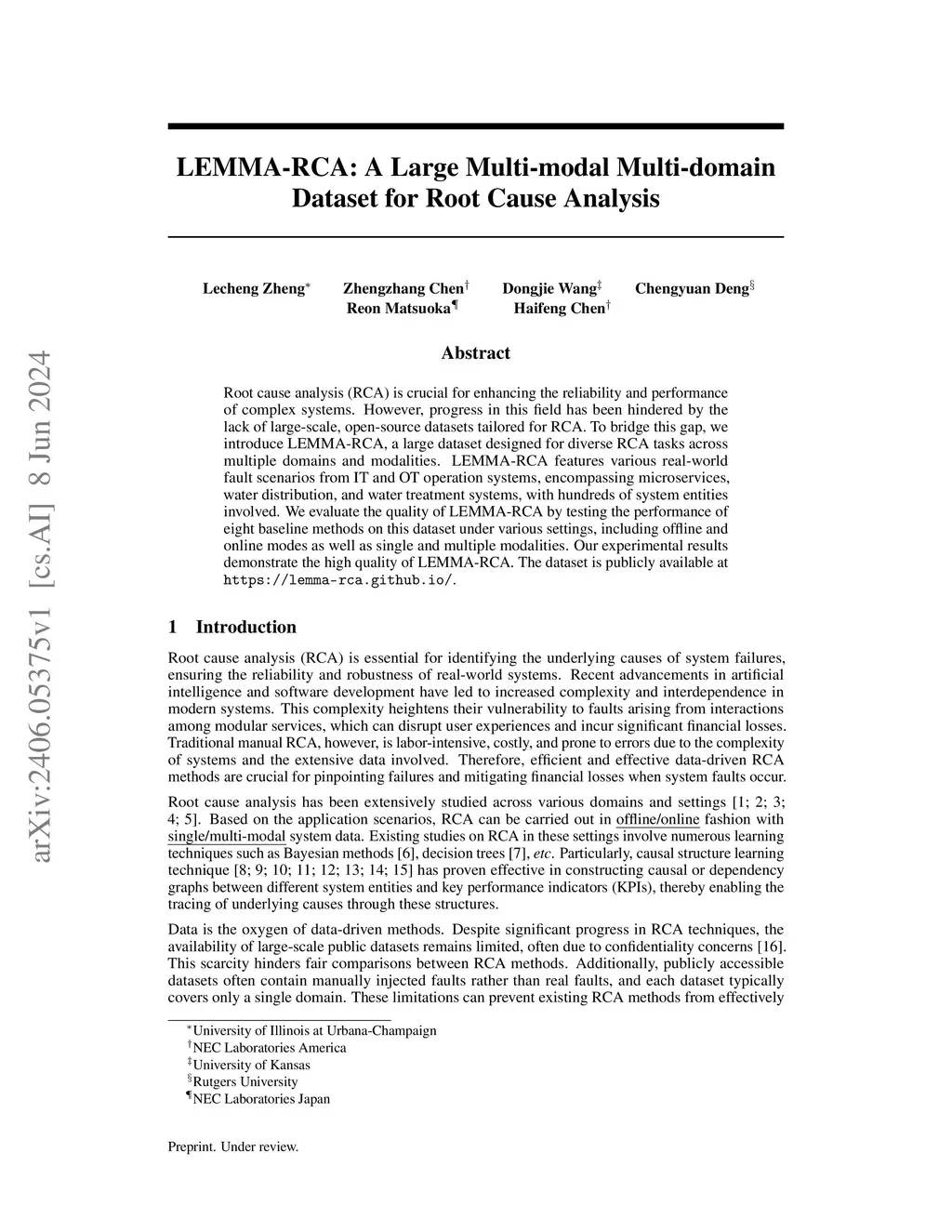 Root cause analysis (RCA) is crucial for enhancing the reliability and performance of complex systems. However, progress in this field has been hindered by the lack of large-scale, open-source datasets tailored for RCA. To bridge this gap, we introduce LEMMA-RCA, a large dataset designed for diverse RCA tasks across multiple domains and modalities. LEMMA-RCA features various real-world fault scenarios from IT and OT operation systems, encompassing microservices, water distribution, and water treatment systems, with hundreds of system entities involved. We evaluate the quality of LEMMA-RCA by testing the performance of eight baseline methods on this dataset under various settings, including offline and online modes as well as single and multiple modalities. Our experimental results demonstrate the high quality of LEMMA-RCA. The dataset is publicly available atthis https URL.