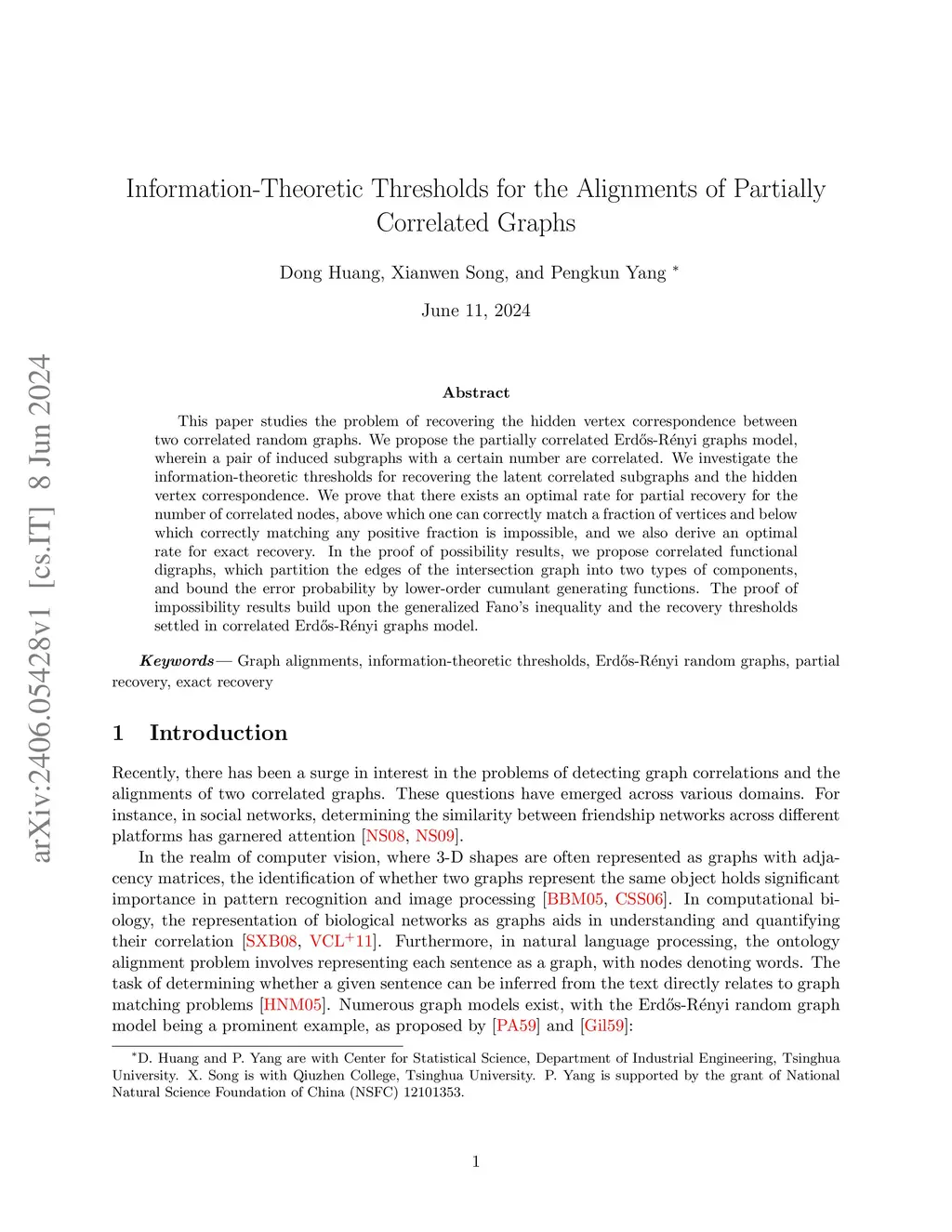 This paper studies the problem of recovering the hidden vertex correspondence between two correlated random graphs. We propose the partially correlated Erdős-Rényi graphs model, wherein a pair of induced subgraphs with a certain number are correlated. We investigate the information-theoretic thresholds for recovering the latent correlated subgraphs and the hidden vertex correspondence. We prove that there exists an optimal rate for partial recovery for the number of correlated nodes, above which one can correctly match a fraction of vertices and below which correctly matching any positive fraction is impossible, and we also derive an optimal rate for exact recovery. In the proof of possibility results, we propose correlated functional digraphs, which partition the edges of the intersection graph into two types of components, and bound the error probability by lower-order cumulant generating functions. The proof of impossibility results build upon the generalized Fano's inequality and the recovery thresholds settled in correlated Erdős-Rényi graphs model.