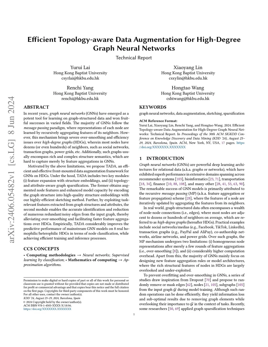 Efficient Topology-aware Data Augmentation for High-Degree Graph Neural
