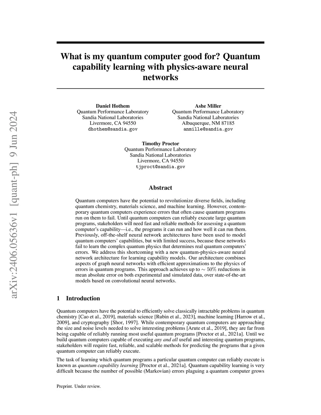 Quantum computers have the potential to revolutionize diverse fields, including quantum chemistry, materials science, and machine learning. However, contemporary quantum computers experience errors that often cause quantum programs run on them to fail. Until quantum computers can reliably execute large quantum programs, stakeholders will need fast and reliable methods for assessing a quantum computer's capability-i.e., the programs it can run and how well it can run them. Previously, off-the-shelf neural network architectures have been used to model quantum computers' capabilities, but with limited success, because these networks fail to learn the complex quantum physics that determines real quantum computers' errors. We address this shortcoming with a new quantum-physics-aware neural network architecture for learning capability models. Our architecture combines aspects of graph neural networks with efficient approximations to the physics of errors in quantum programs. This approach achieves up to reductions in mean absolute error on both experimental and simulated data, over state-of-the-art models based on convolutional neural networks.