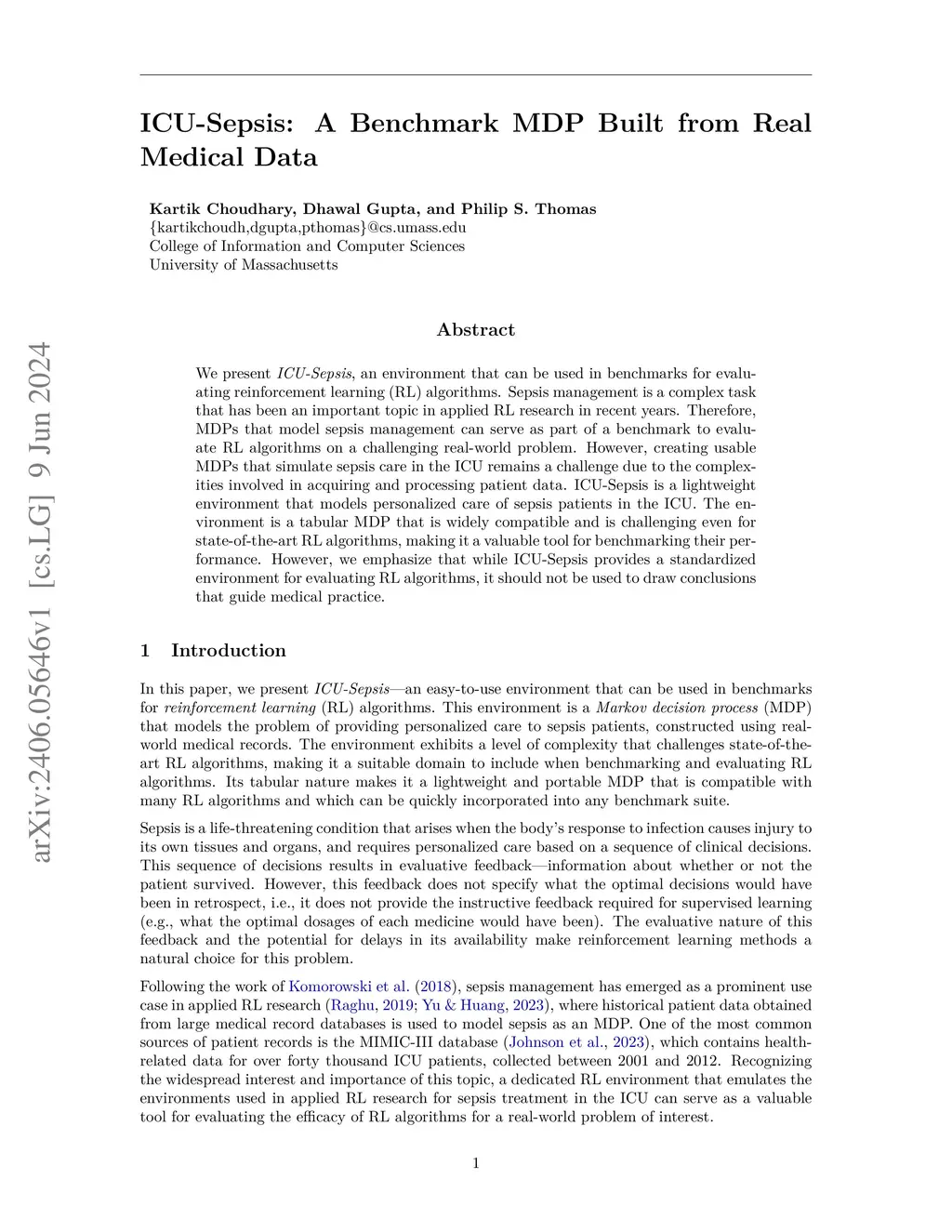 ICU-Sepsis: A Benchmark MDP Built from Real Medical Data