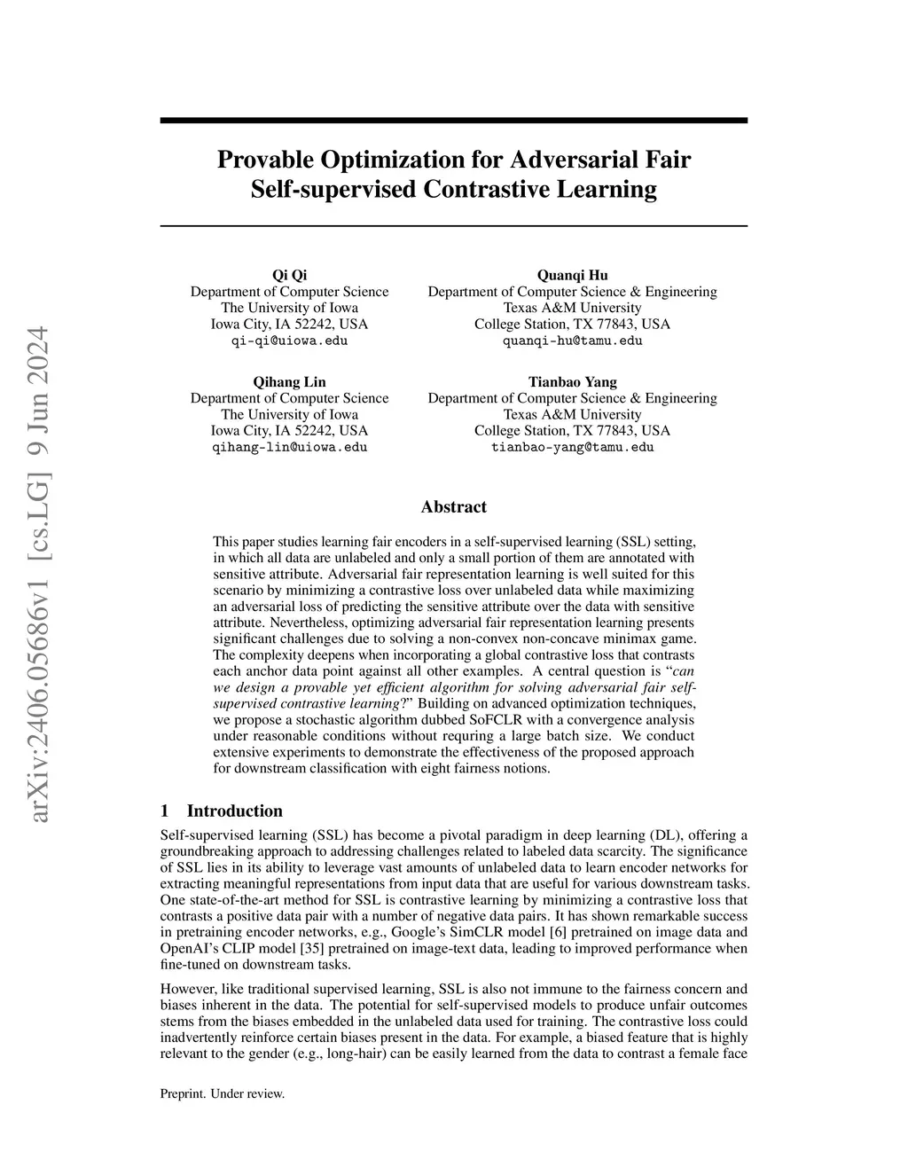 Provable Optimization for Adversarial Fair Self-supervised Contrastive