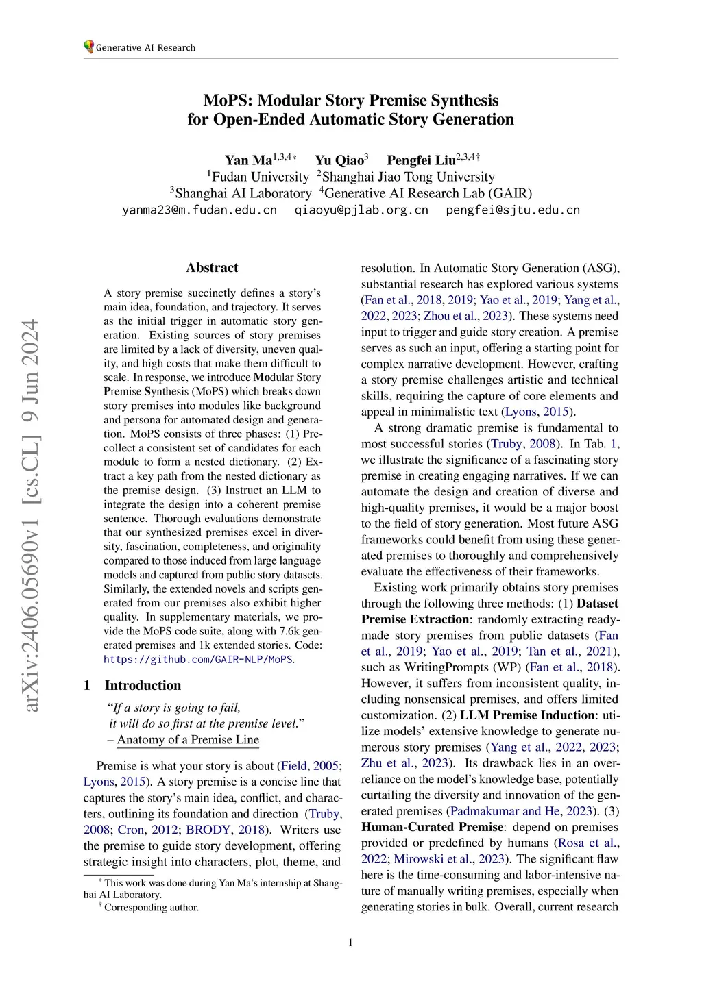 MoPS: Modular Story Premise Synthesis for Open-Ended Automatic Story