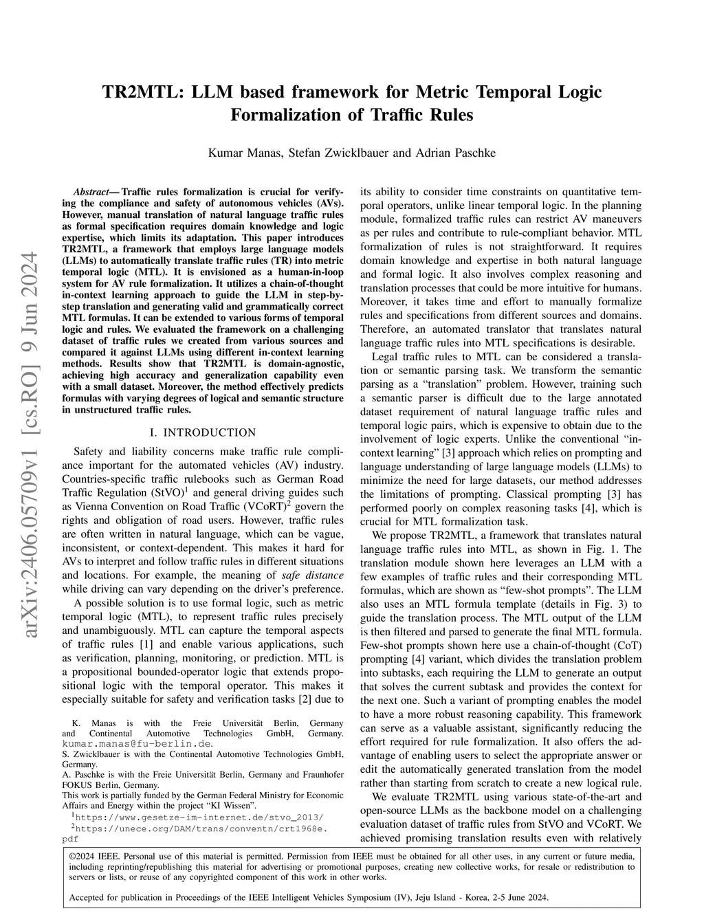 Traffic rules formalization is crucial for verifying the compliance and safety of autonomous vehicles (AVs). However, manual translation of natural language traffic rules as formal specification requires domain knowledge and logic expertise, which limits its adaptation. This paper introduces TR2MTL, a framework that employs large language models (LLMs) to automatically translate traffic rules (TR) into metric temporal logic (MTL). It is envisioned as a human-in-loop system for AV rule formalization. It utilizes a chain-of-thought in-context learning approach to guide the LLM in step-by-step translation and generating valid and grammatically correct MTL formulas. It can be extended to various forms of temporal logic and rules. We evaluated the framework on a challenging dataset of traffic rules we created from various sources and compared it against LLMs using different in-context learning methods. Results show that TR2MTL is domain-agnostic, achieving high accuracy and generalization capability even with a small dataset. Moreover, the method effectively predicts formulas with varying degrees of logical and semantic structure in unstructured traffic rules.