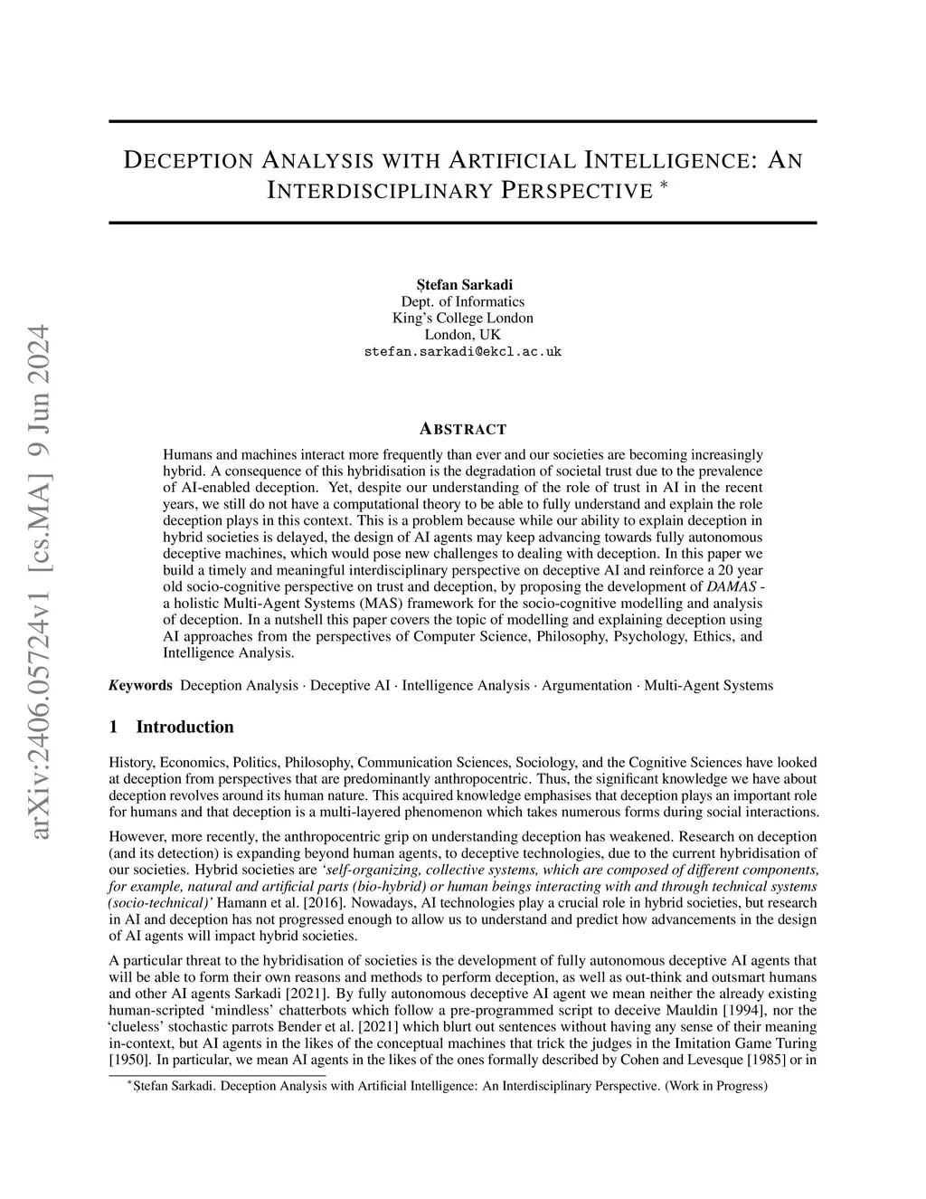 Humans and machines interact more frequently than ever and our societies are becoming increasingly hybrid. A consequence of this hybridisation is the degradation of societal trust due to the prevalence of AI-enabled deception. Yet, despite our understanding of the role of trust in AI in the recent years, we still do not have a computational theory to be able to fully understand and explain the role deception plays in this context. This is a problem because while our ability to explain deception in hybrid societies is delayed, the design of AI agents may keep advancing towards fully autonomous deceptive machines, which would pose new challenges to dealing with deception. In this paper we build a timely and meaningful interdisciplinary perspective on deceptive AI and reinforce a 20 year old socio-cognitive perspective on trust and deception, by proposing the development of DAMAS -- a holistic Multi-Agent Systems (MAS) framework for the socio-cognitive modelling and analysis of deception. In a nutshell this paper covers the topic of modelling and explaining deception using AI approaches from the perspectives of Computer Science, Philosophy, Psychology, Ethics, and Intelligence Analysis.