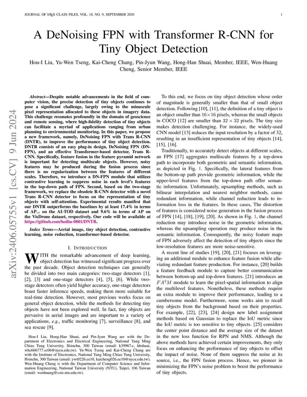 A DeNoising FPN With Transformer R-CNN for Tiny Object Detection