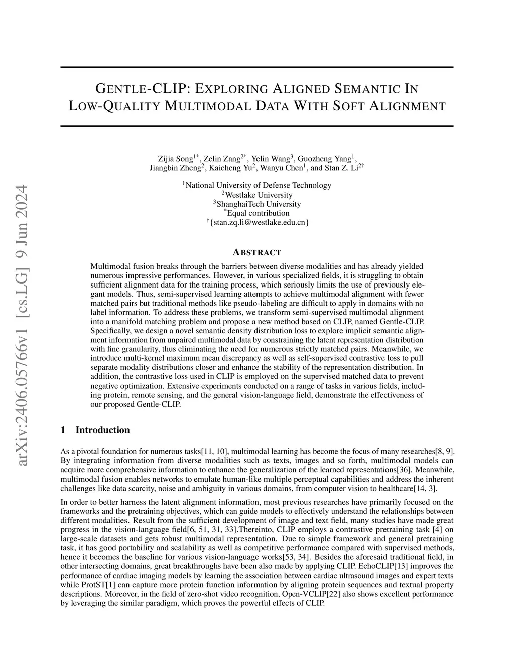 Gentle-CLIP: Exploring Aligned Semantic In Low-Quality Multimodal Data