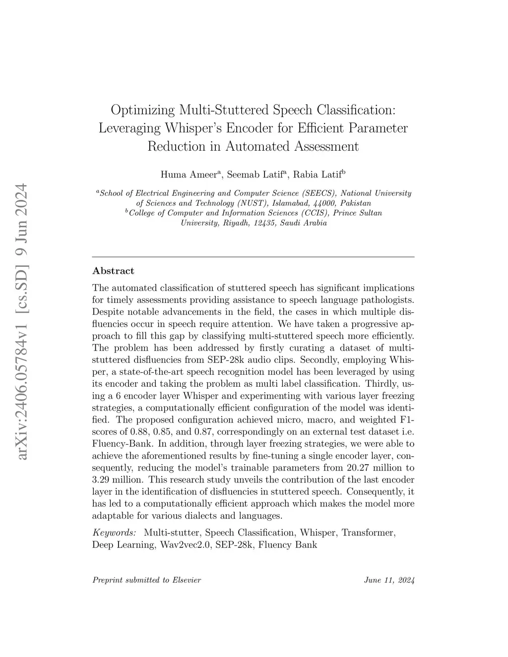 The automated classification of stuttered speech has significant implications for timely assessments providing assistance to speech language pathologists. Despite notable advancements in the field, the cases in which multiple disfluencies occur in speech require attention. We have taken a progressive approach to fill this gap by classifying multi-stuttered speech more efficiently. The problem has been addressed by firstly curating a dataset of multi-stuttered disfluencies from open source dataset SEP-28k audio clips. Secondly, employing Whisper, a state-of-the-art speech recognition model has been leveraged by using its encoder and taking the problem as multi label classification. Thirdly, using a 6 encoder layer Whisper and experimenting with various layer freezing strategies, a computationally efficient configuration of the model was identified. The proposed configuration achieved micro, macro, and weighted F1-scores of 0.88, 0.85, and 0.87, correspondingly on an external test dataset i.e. Fluency-Bank. In addition, through layer freezing strategies, we were able to achieve the aforementioned results by fine-tuning a single encoder layer, consequently, reducing the model's trainable parameters from 20.27 million to 3.29 million. This research study unveils the contribution of the last encoder layer in the identification of disfluencies in stuttered speech. Consequently, it has led to a computationally efficient approach, 83.7% less parameters to train, making the proposed approach more adaptable for various dialects and languages.