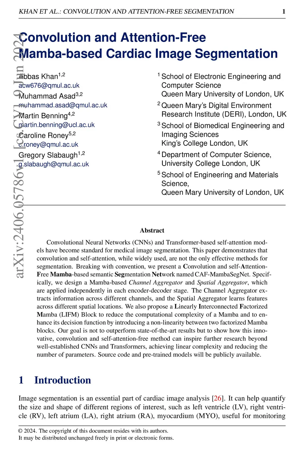 Convolution and Attention-Free Mamba-based Cardiac Image Segmentation
