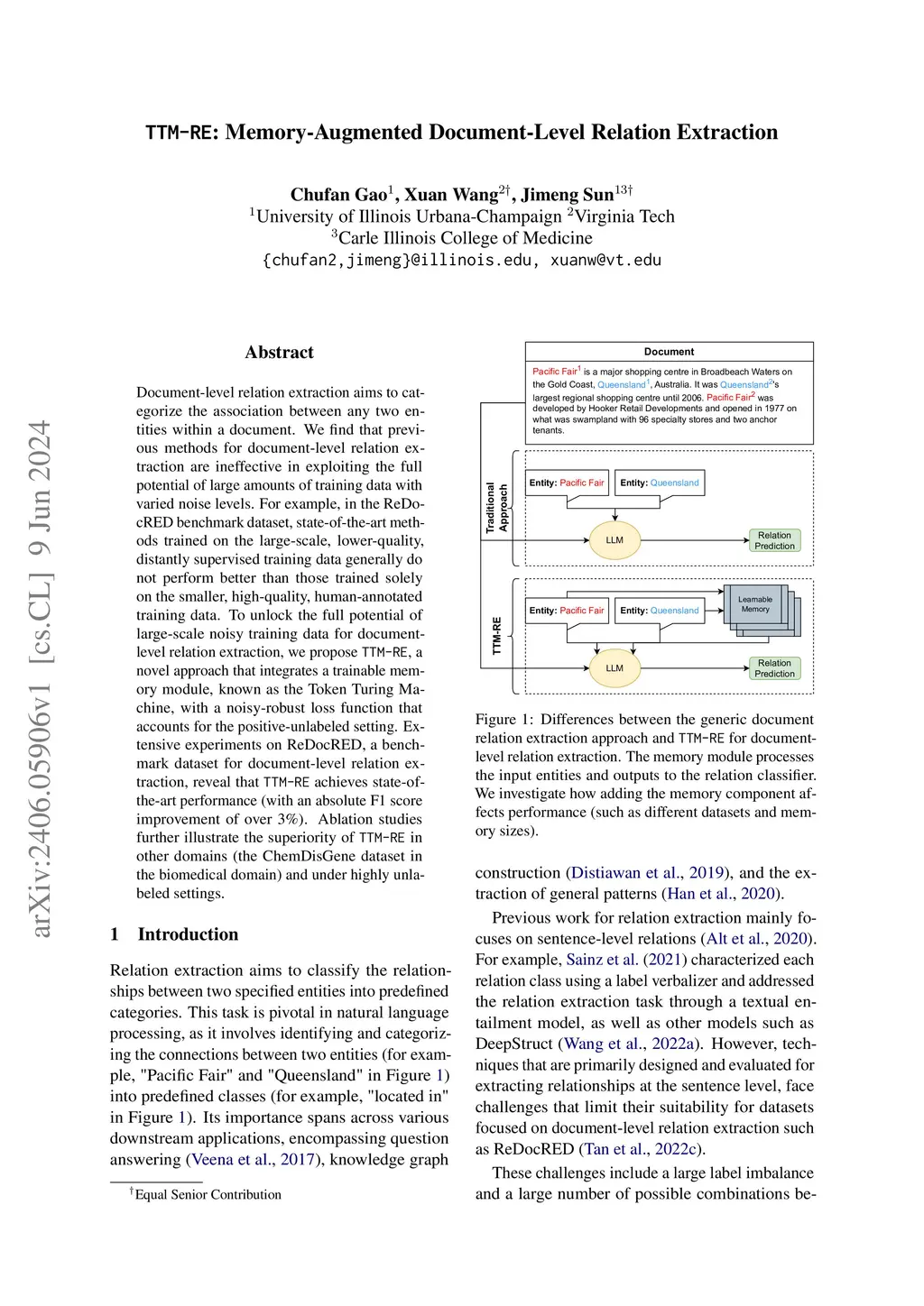 TTM-RE: Memory-Augmented Document-Level Relation Extraction