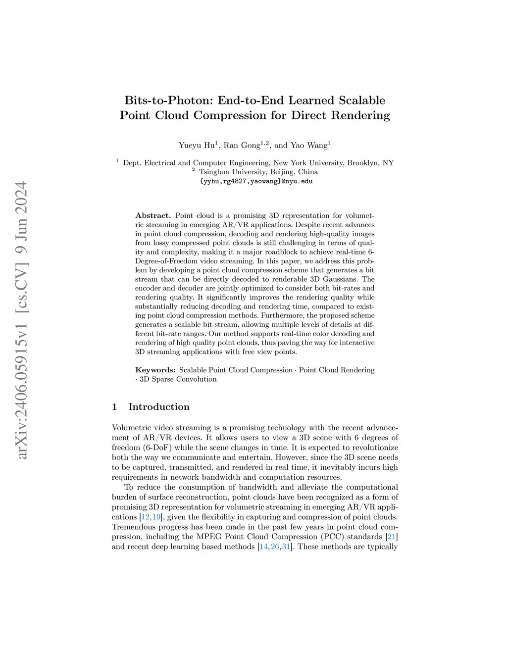 Bits-to-Photon: End-to-End Learned Scalable Point Cloud Compression for